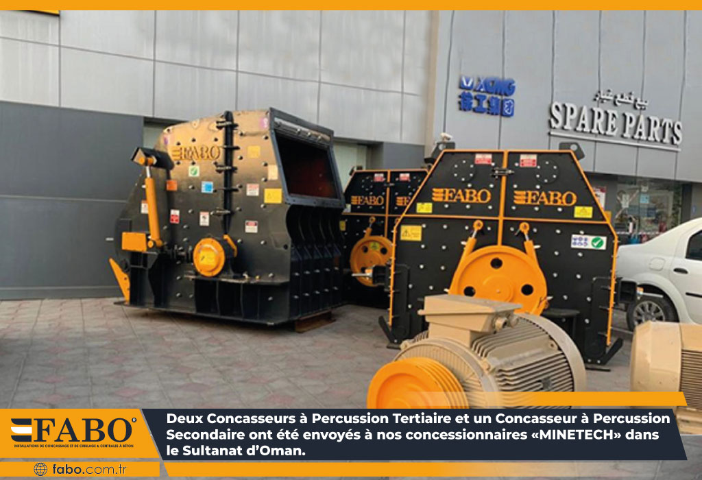 Deux concasseurs à percussion tertiaire et un concasseur à percussion secondaire ont été envoyés à nos concessionnaires «MINETECH» dans le Sultanat d’Oman