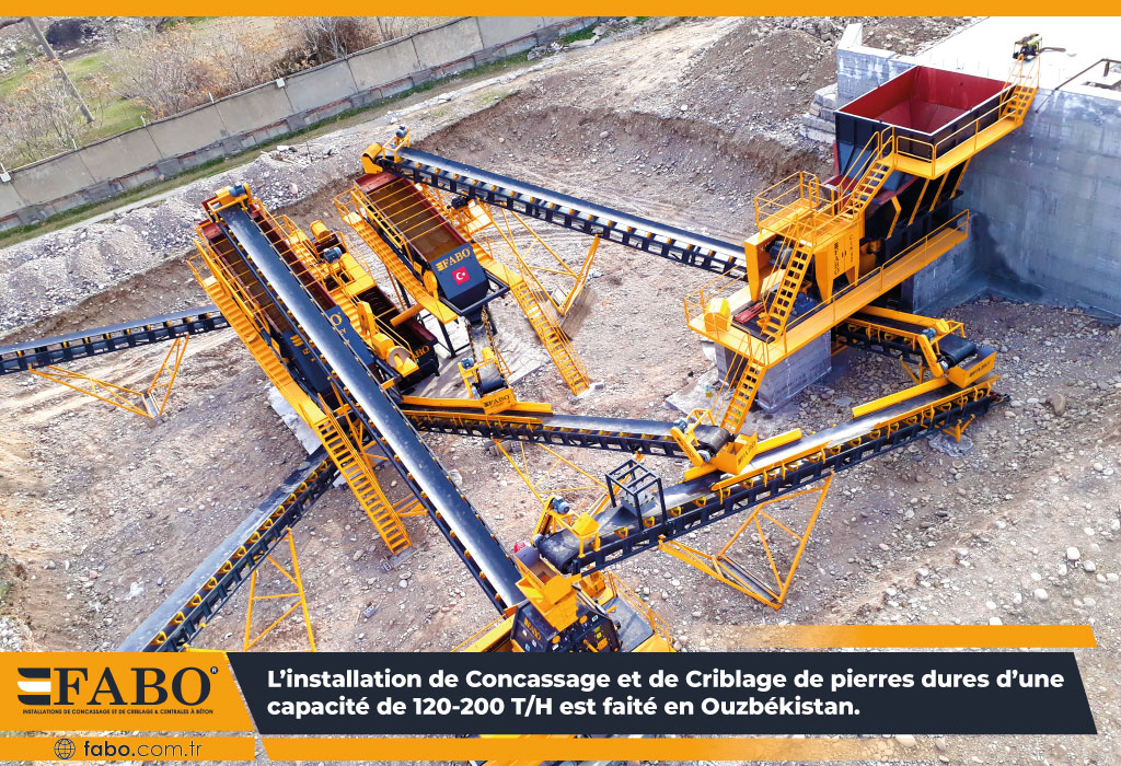 L’installation de concassage et de criblage de pierres dures d’une capacité de 120-200 T / H est faité en Ouzbékistan