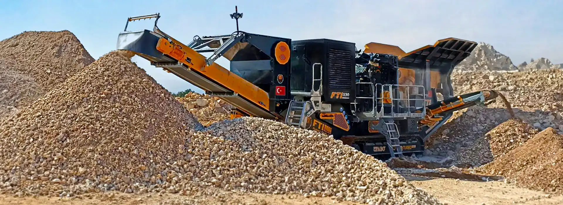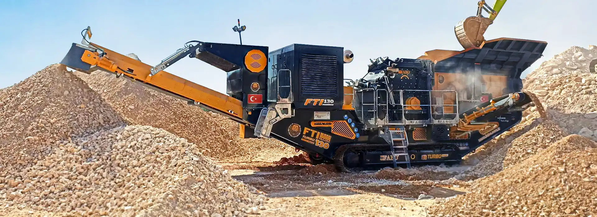 FTI-130 modeli, 500 mm’ye kadar besleme boyutlarını işleyebilen güçlü darbeli kırıcı ünitesiyle yüksek verimli kırma sağlar. Orta ve düşük sertlikteki malzemeler için ideal çözüm sunar.