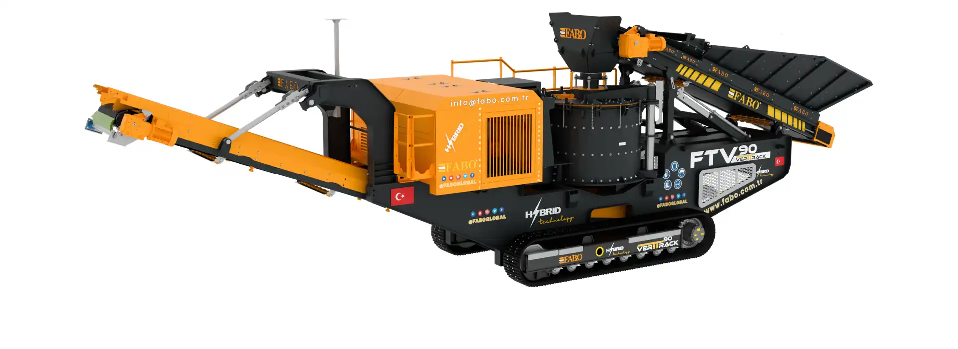 FTV-90 modeli, 50 mm’ye kadar besleme boyutlarını işleyebilen yüksek hızlı dik milli kırıcı ünitesiyle üstün verimli kırma işlemi sunar. Orta ve düşük sertlikteki malzemelerde yüksek oranda kübik formda ürün elde etmek için ideal bir çözümdür. 0-5 mm ince malzeme üretim oranının yüksek olması sayesinde agrega üretiminde ve asfalt-beton uygulamalarında önemli avantaj sağlar.