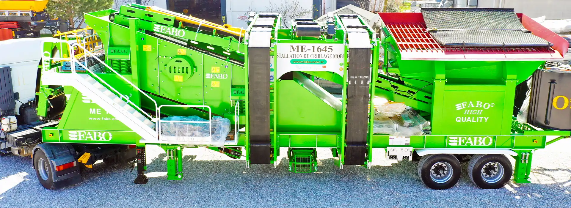 ME-1645 modeli, tek şase üzerinde sistematik bir düzenle; besleme bunkeri, titreşimli elek, stok bantları ve otomasyon sisteminden oluşmaktadır.
