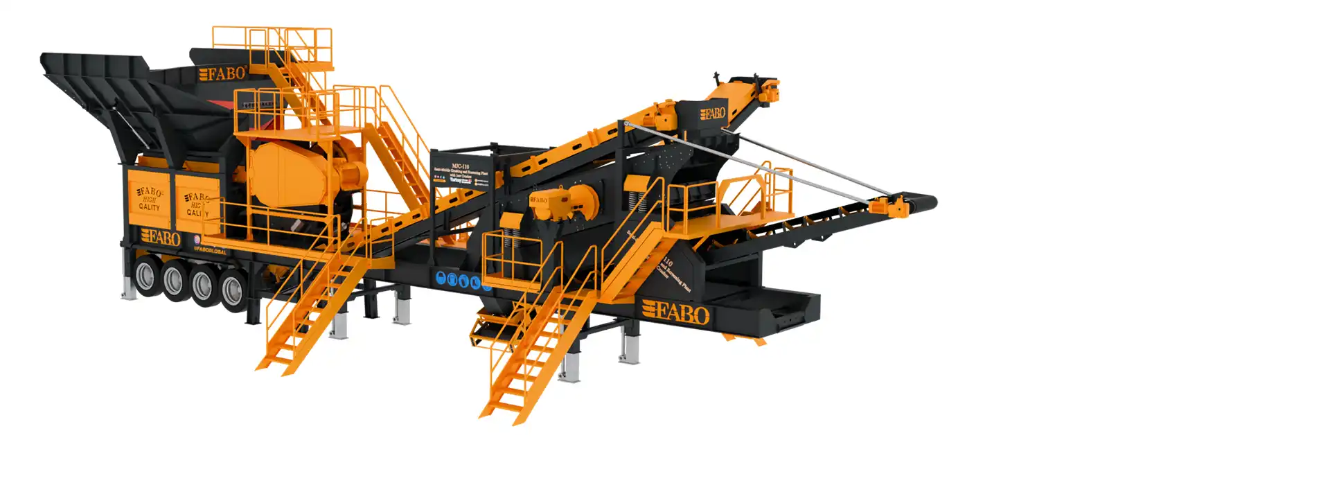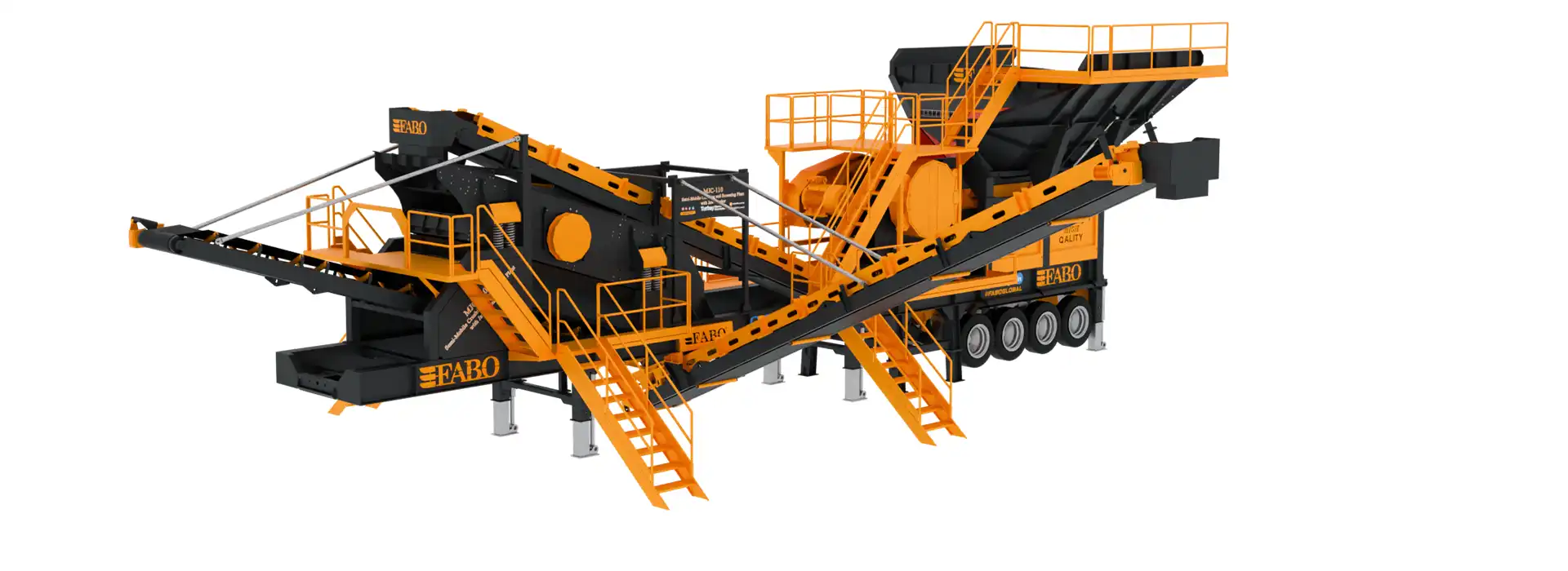 MJC-110 modeli, tek şase üzerinde sistematik bir düzenle; titreşimli besleme bunkeri, bypass bandı, çeneli kırıcı, titreşimli elek, stok bantları ve otomasyon sisteminden oluşmaktadır.