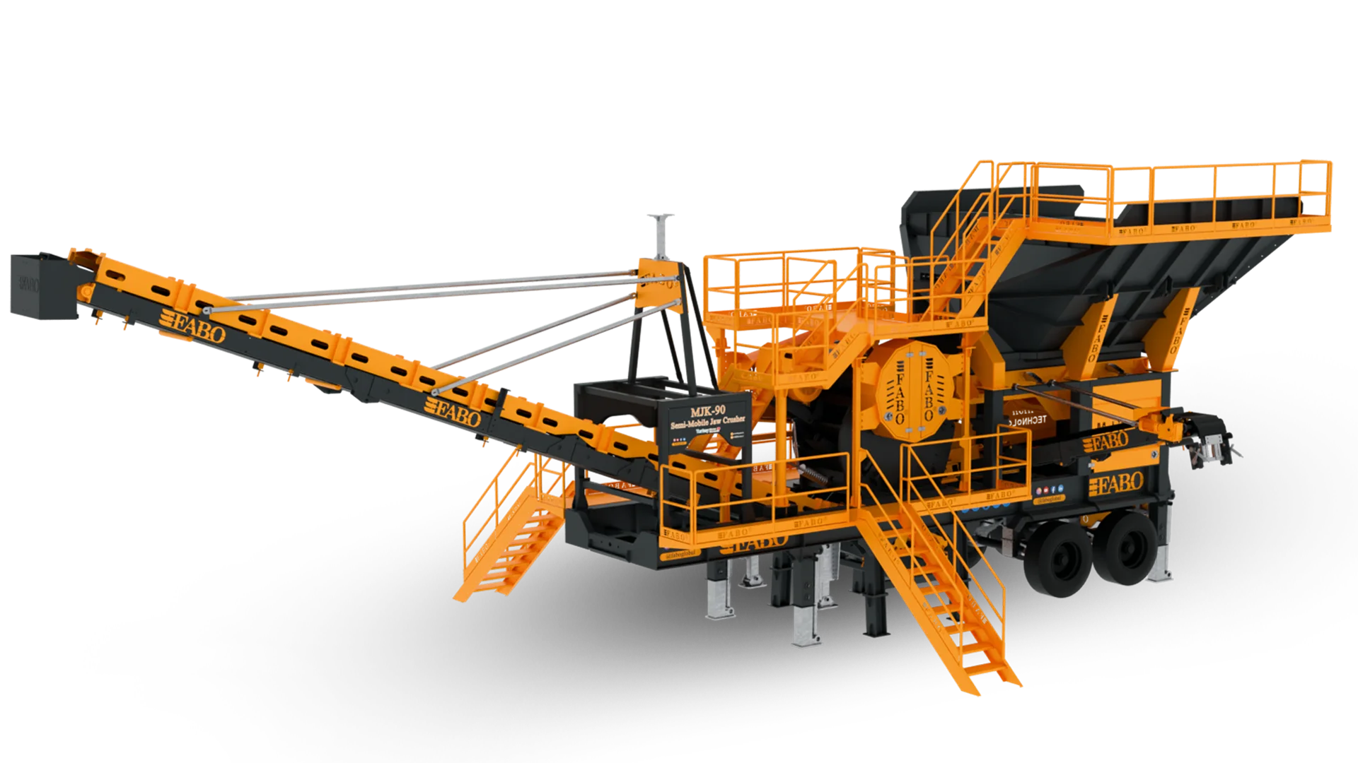 MJK-90 modeli, tek şase üzerinde sistematik bir düzenle; titreşimli besleme bunkeri, bypass bandı, çeneli kırıcı, stok bantları ve otomasyon sisteminden oluşmaktadır.