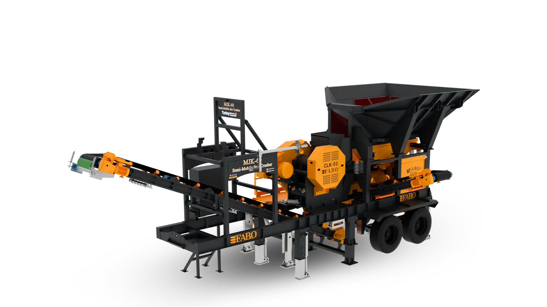 MJK-110 modeli, tek şase üzerinde sistematik bir düzenle; titreşimli besleme bunkeri, bypass bandı, çeneli kırıcı, stok bantları ve otomasyon sisteminden oluşmaktadır.