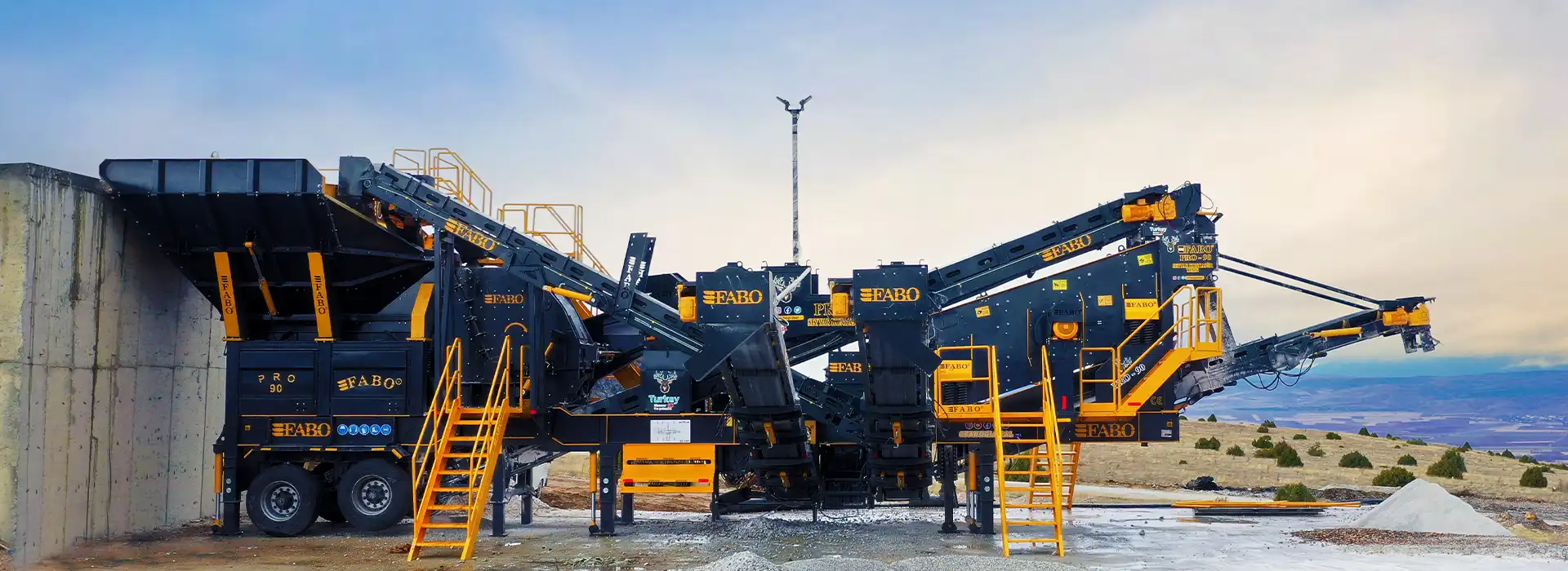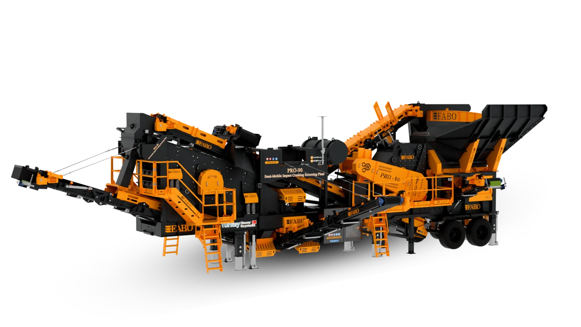 PRO-90 modeli, tek şase üzerinde sistematik bir düzenle; titreşimli besleme bunkeri, opsiyonel wobbler besleyici, bypass bandı, darbeli kırıcı, titreşimli elek, stok ve geri dönüş bantları ile otomasyon sisteminden oluşmaktadır.