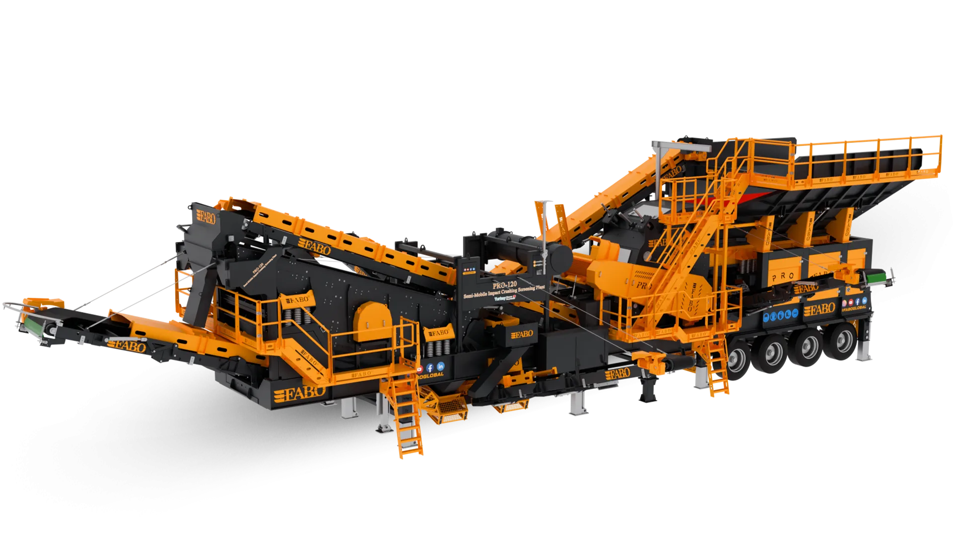 PRO-130 modeli, tek şase üzerinde sistematik bir düzenle; titreşimli besleme bunkeri, opsiyonel wobbler besleyici, bypass bandı, darbeli kırıcı, titreşimli elek, stok ve geri dönüş bantları ile otomasyon sisteminden oluşmaktadır.