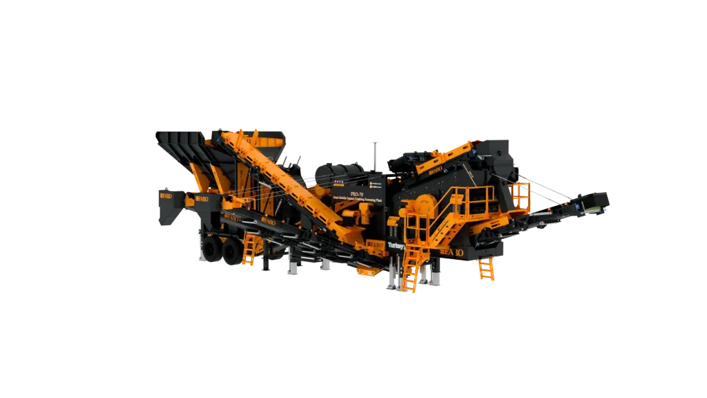 PRO-70 modeli, tek şase üzerinde sistematik bir düzenle; titreşimli besleme bunkeri, opsiyonel wobbler besleyici, bypass bandı, darbeli kırıcı, titreşimli elek, stok ve geri dönüş bantları ile otomasyon sisteminden oluşmaktadır.
